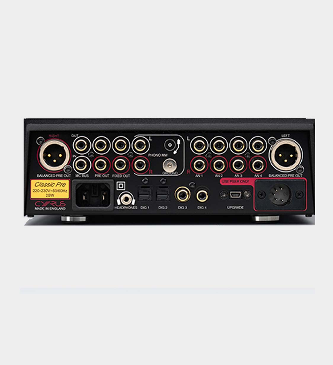 Le Classic PRE est la dernière évolution du préamplificateur emblématique de Cyrus, présent dans la gamme depuis plus de dix ans. Cette nouvelle version bénéficie d’une refonte complète du circuit et de composants internes, inspirée du développement de la série XR, tout en conservant le design intemporel de la série Classic. Résultat : une amélioration significative des performances sonores, pensée pour les audiophiles exigeants.