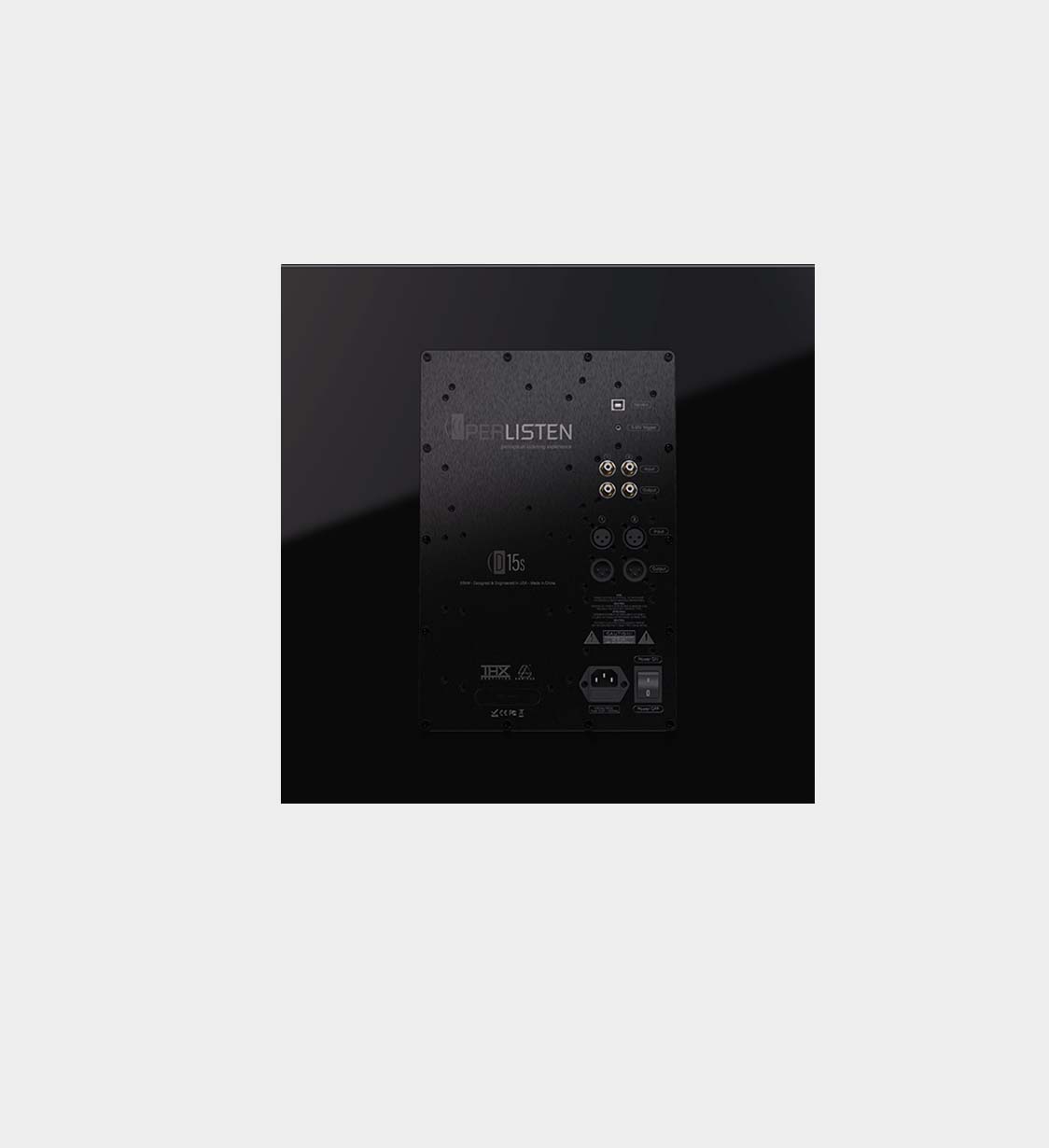 Avec ses dimensions de 528 × 500 × 500 mm et un poids de 46 kg, le D15s reste étonnamment compact au regard de ses performances. Sa finition Piano Black lui permet de s’intégrer élégamment dans les salles dédiées comme dans les salons haut de gamme.
